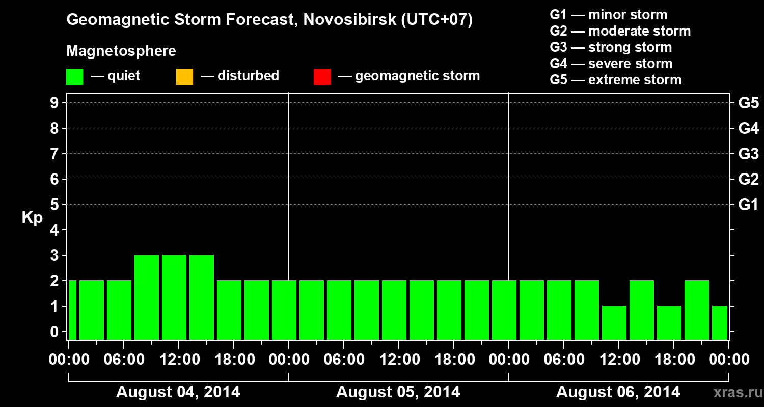 Geomagnetic storm forecast in Novosibirsk for Aug 04, 2014