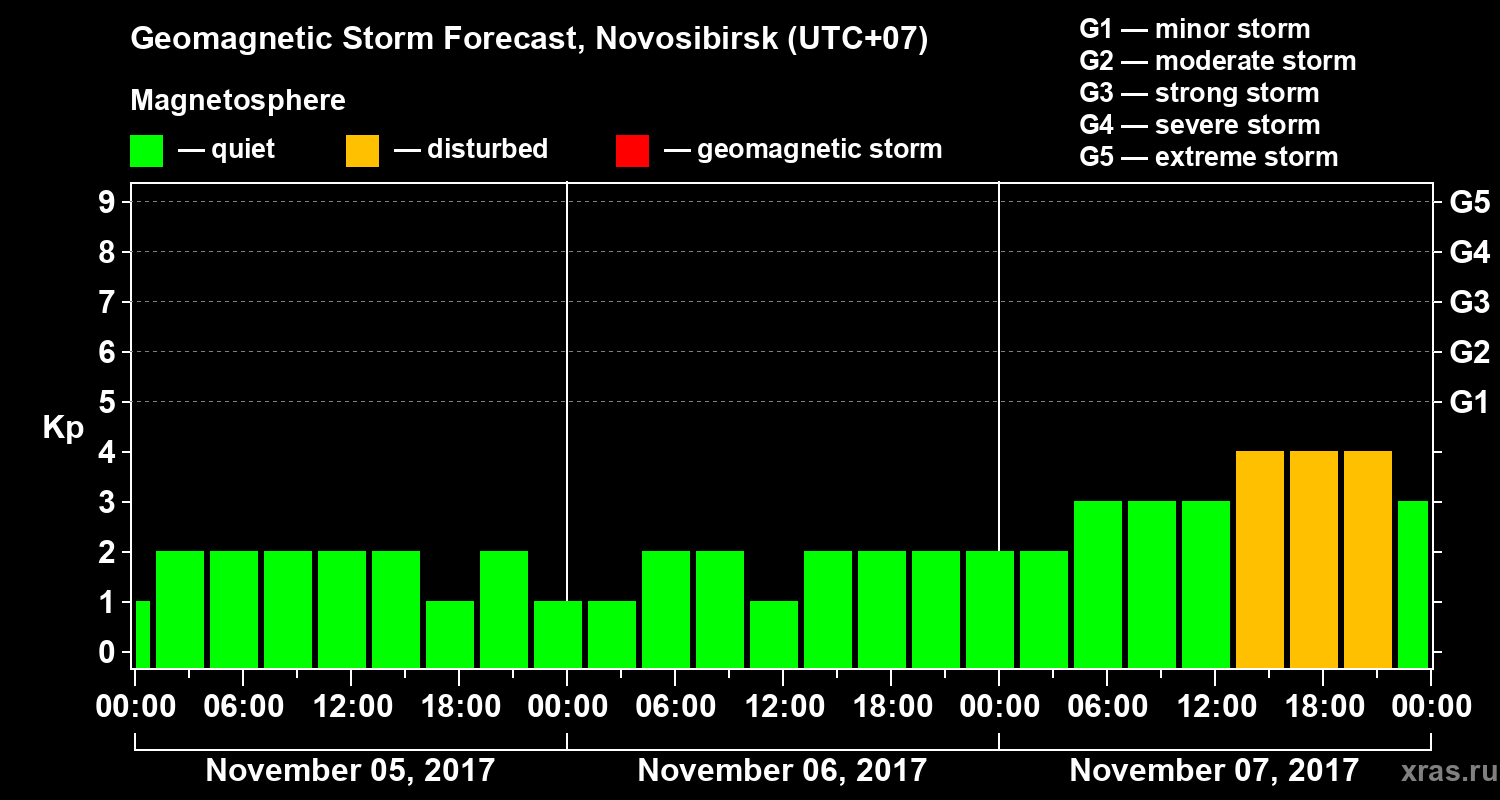 Geomagnetic storm forecast in Novosibirsk for Nov 05, 2017