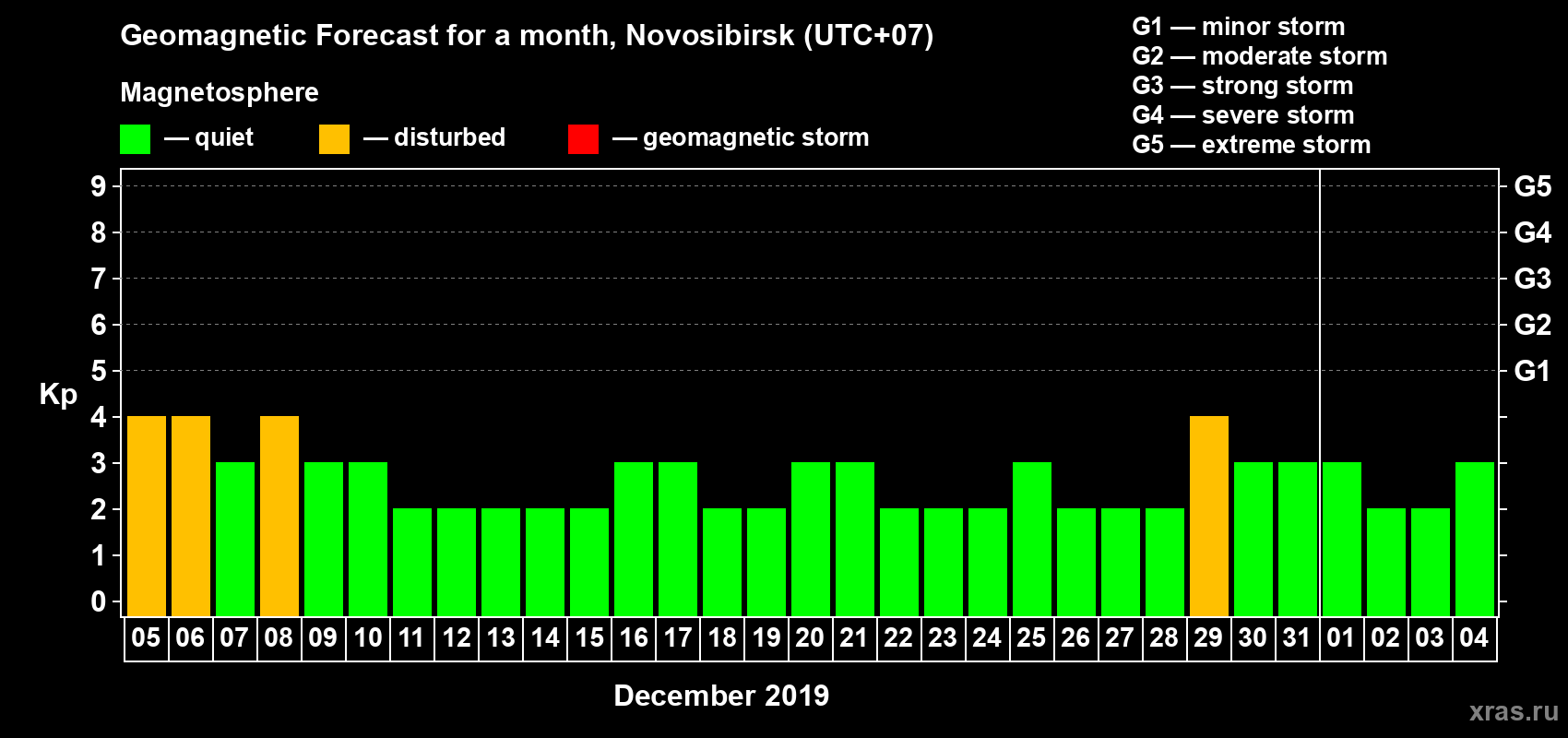 Geomagnetic storm forecast in Novosibirsk for Dec 05, 2018