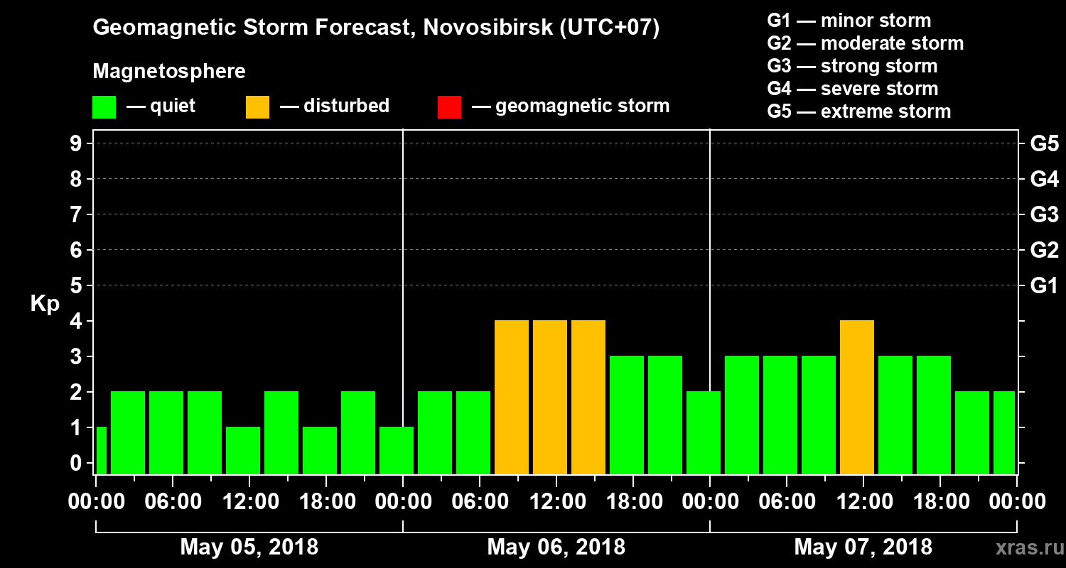 Geomagnetic activity forecast in Novosibirsk — May 05, 2018