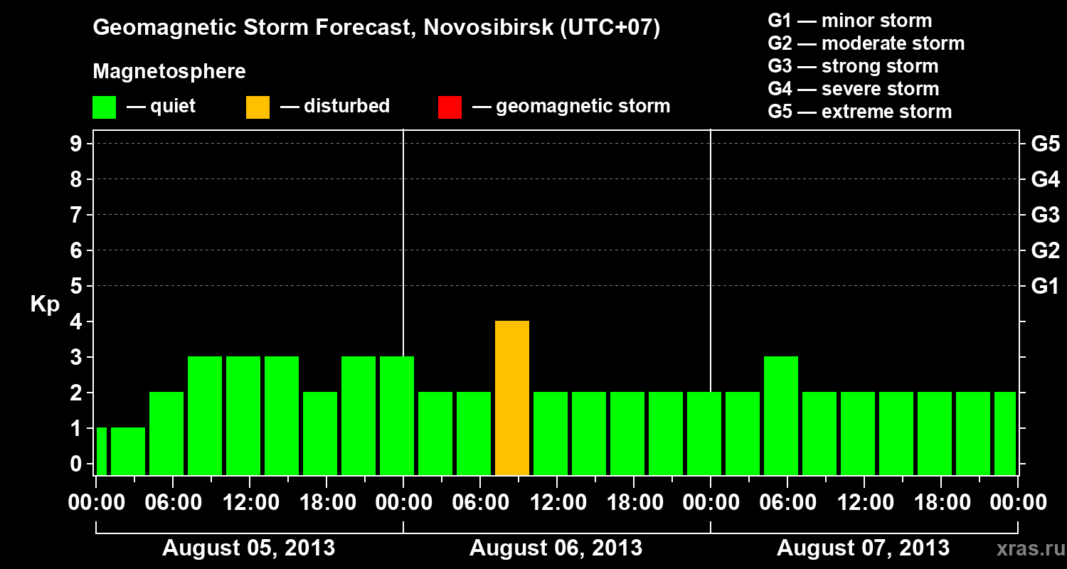 Geomagnetic storm forecast in Novosibirsk for Aug 05, 2013