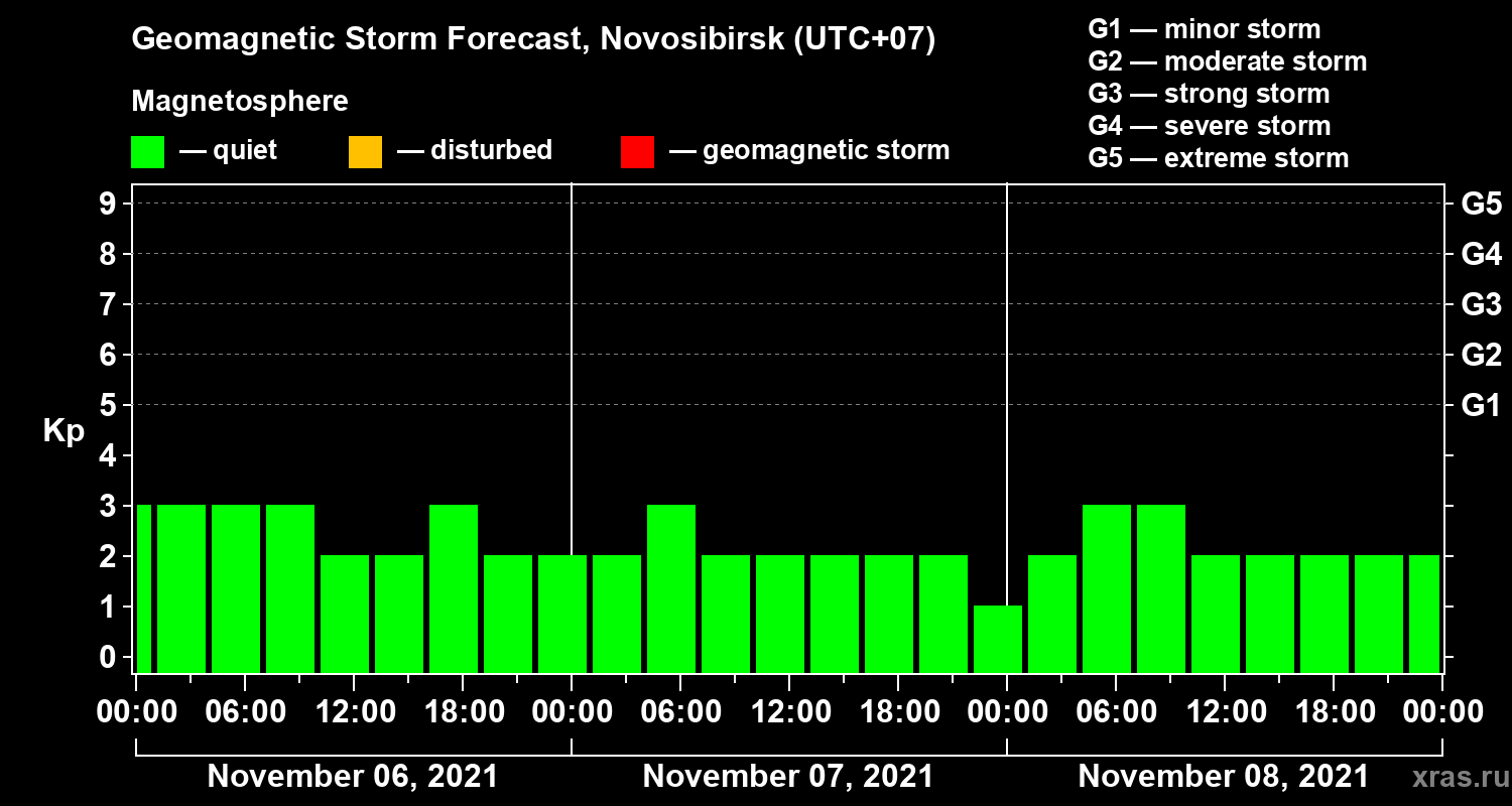 Geomagnetic activity forecast in Novosibirsk — Nov 06, 2021