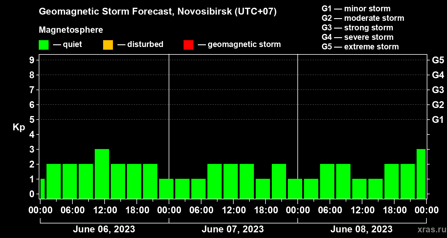 Geomagnetic activity forecast in Novosibirsk — Jun 06, 2023