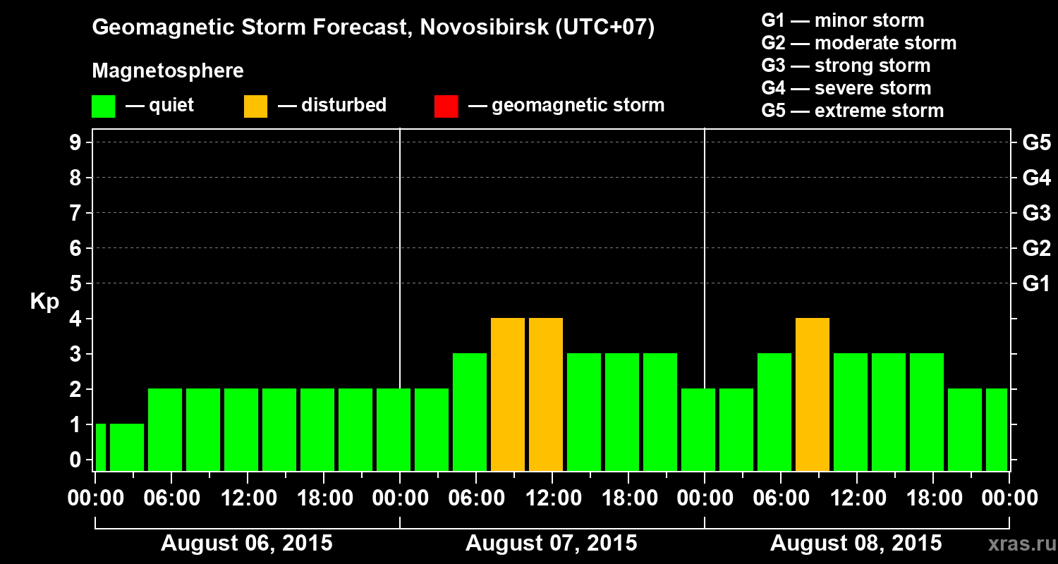Geomagnetic activity forecast in Novosibirsk — Aug 06, 2015