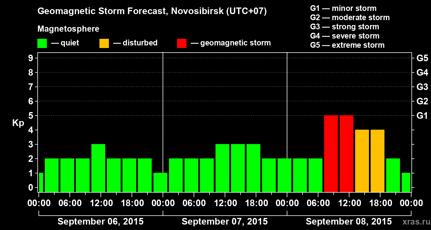 Geomagnetic storm forecast in Novosibirsk for Sep 06, 2015