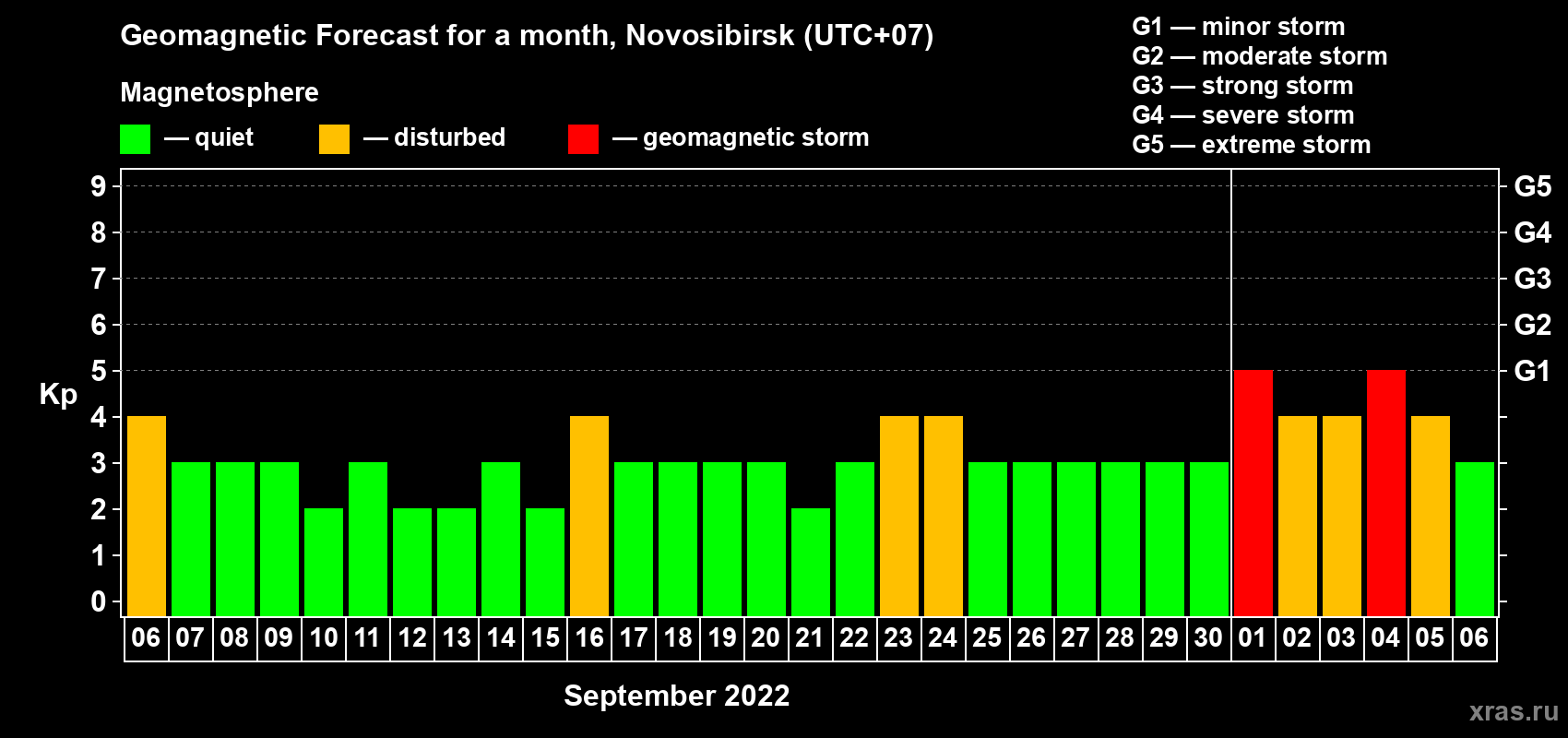 Geomagnetic storm forecast in Novosibirsk for Sep 06, 2022