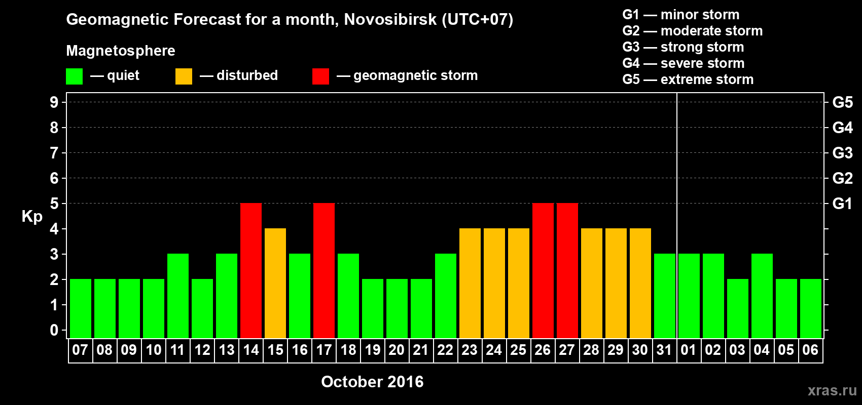 Geomagnetic storm forecast in Novosibirsk for Oct 07, 2016
