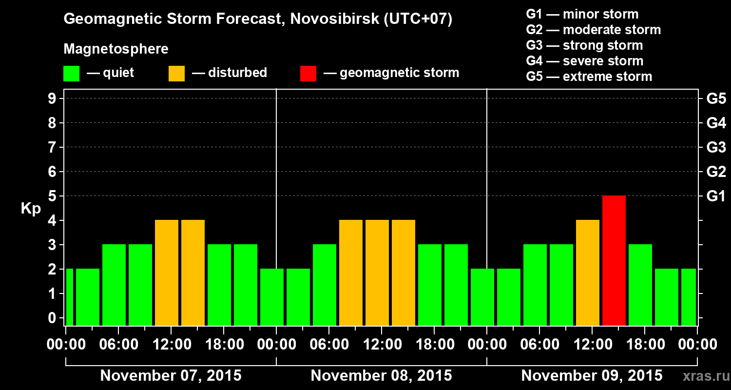 Geomagnetic storm forecast in Novosibirsk for Nov 07, 2015