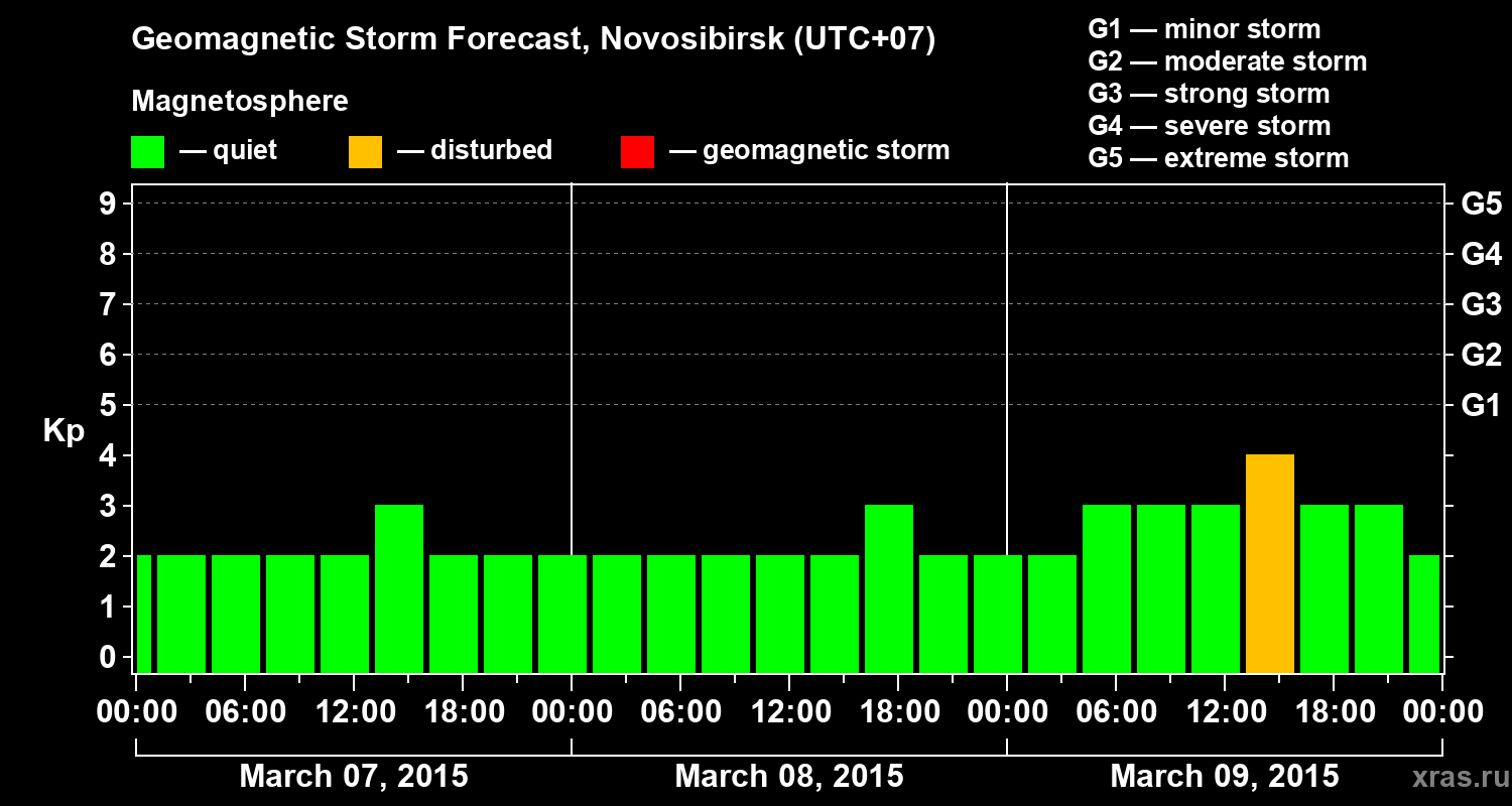 Geomagnetic storm forecast in Novosibirsk for Mar 07, 2015