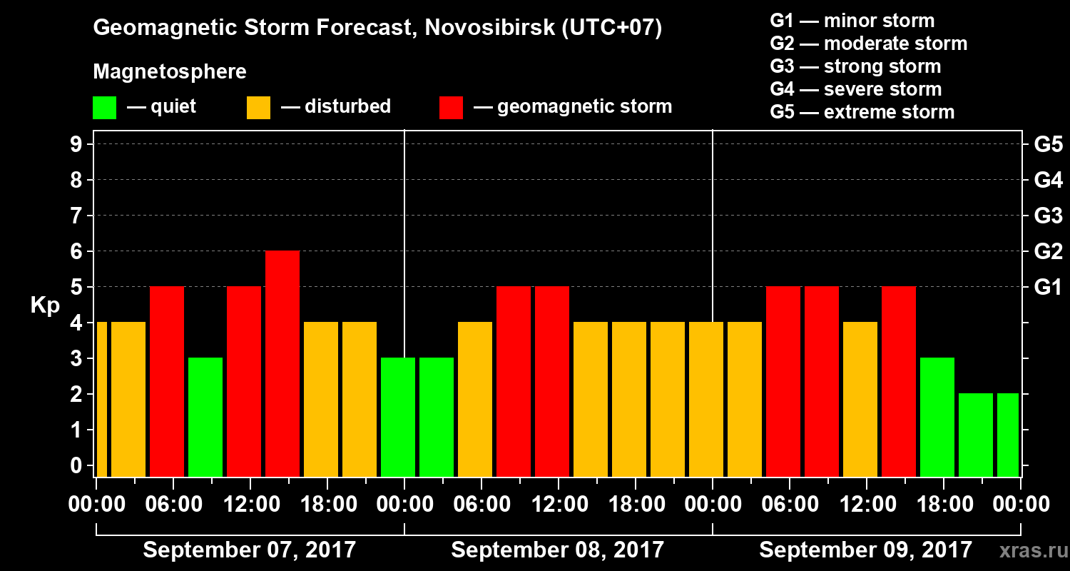 Geomagnetic storm forecast in Novosibirsk for Sep 07, 2017