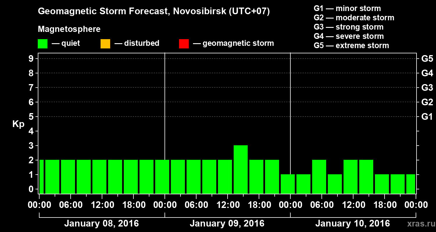 Geomagnetic storm forecast in Novosibirsk for Jan 08, 2016
