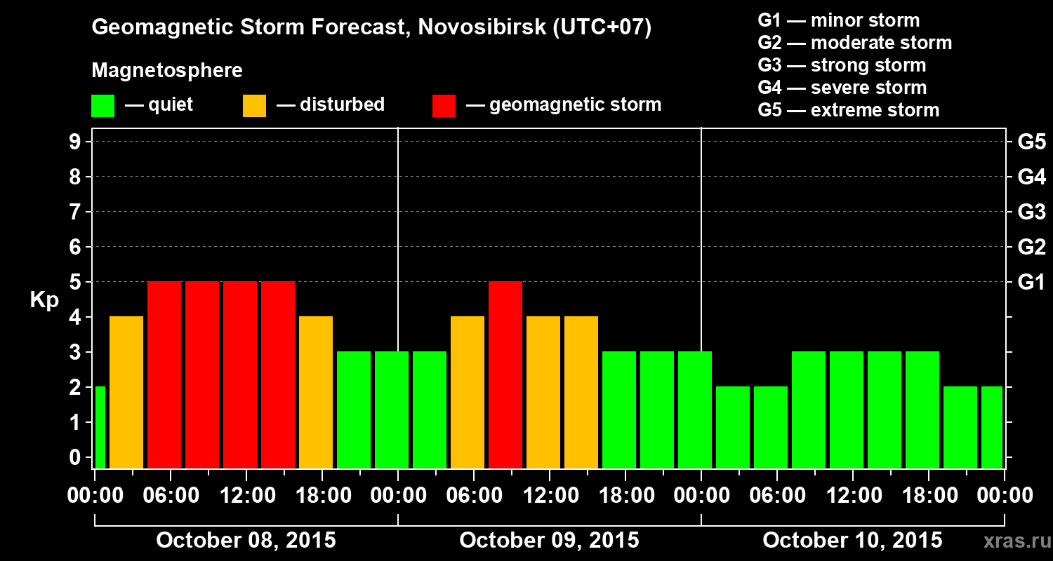 Geomagnetic storm forecast in Novosibirsk for Oct 08, 2015