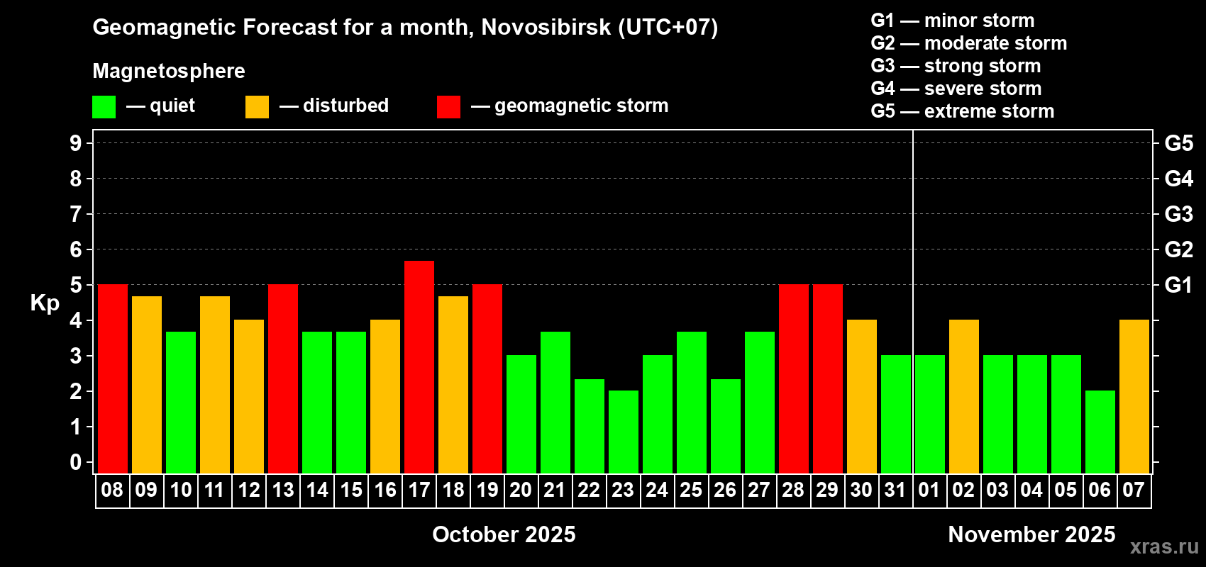 Geomagnetic storm forecast in Novosibirsk for Oct 08, 2025