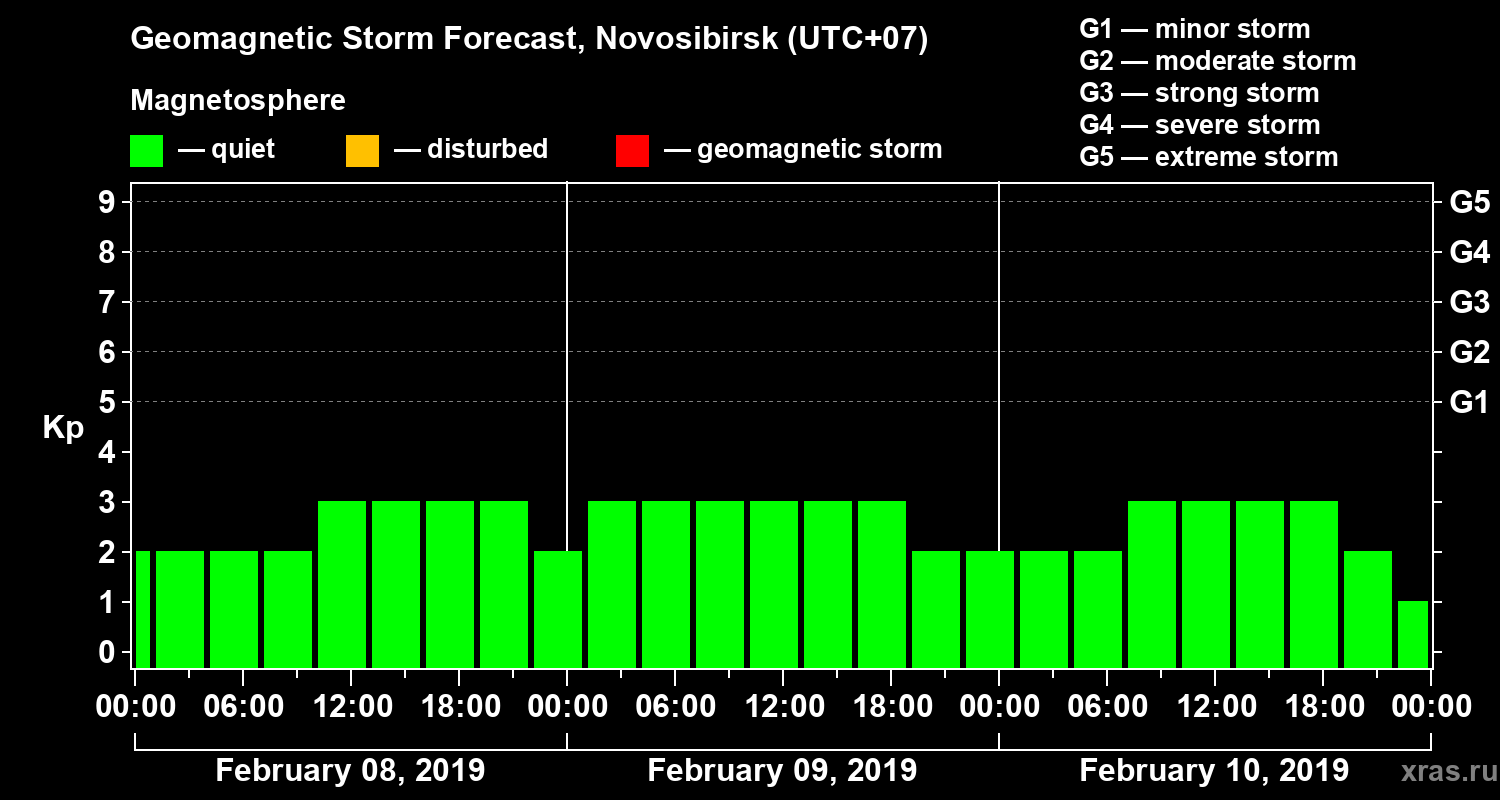 Geomagnetic storm forecast in Novosibirsk for Feb 08, 2019