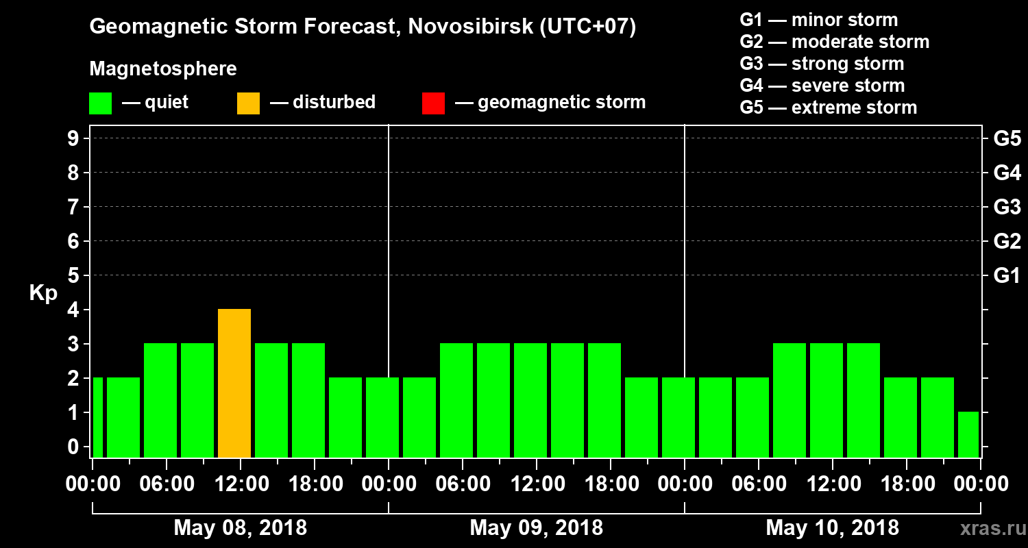 Geomagnetic activity forecast in Novosibirsk — May 08, 2018