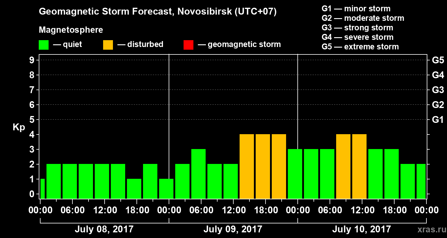 Geomagnetic storm forecast in Novosibirsk for Jul 08, 2017