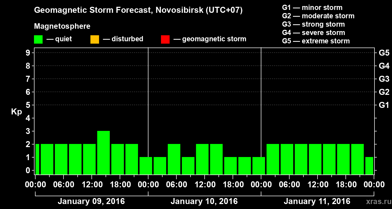 Geomagnetic storm forecast in Novosibirsk for Jan 09, 2016