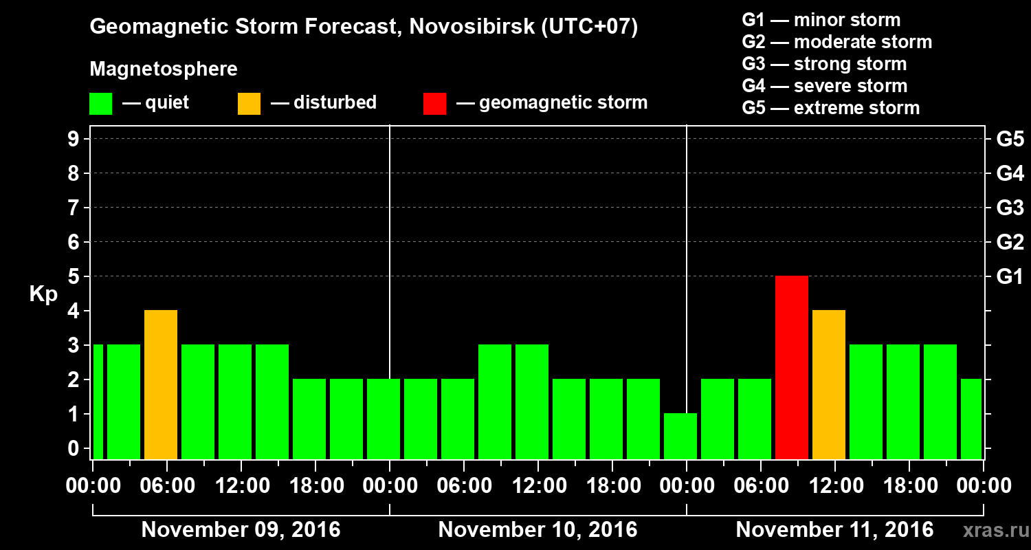 Geomagnetic storm forecast in Novosibirsk for Nov 09, 2016