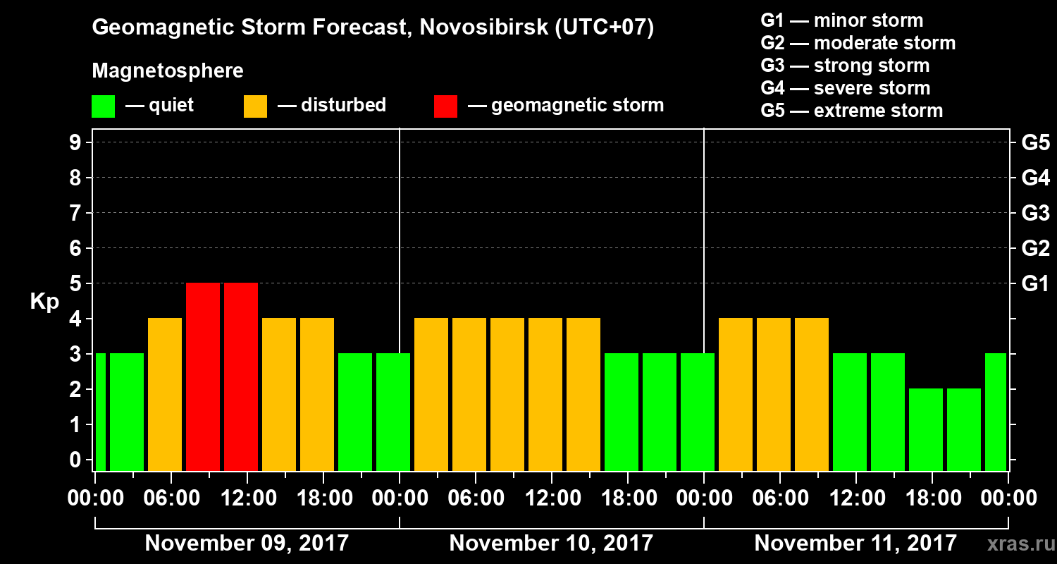 Geomagnetic storm forecast in Novosibirsk for Nov 09, 2017