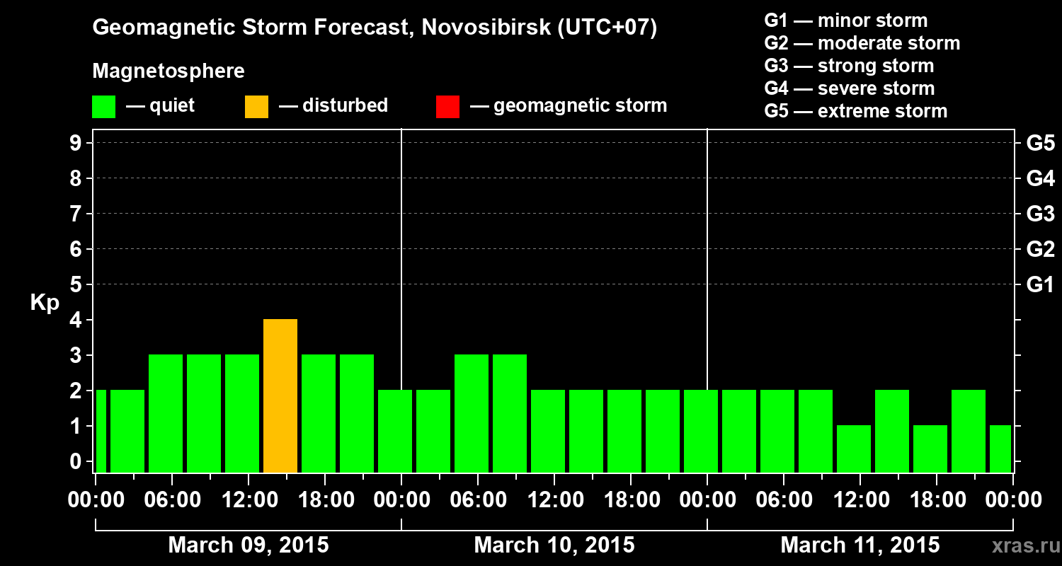 Geomagnetic storm forecast in Novosibirsk for Mar 09, 2015