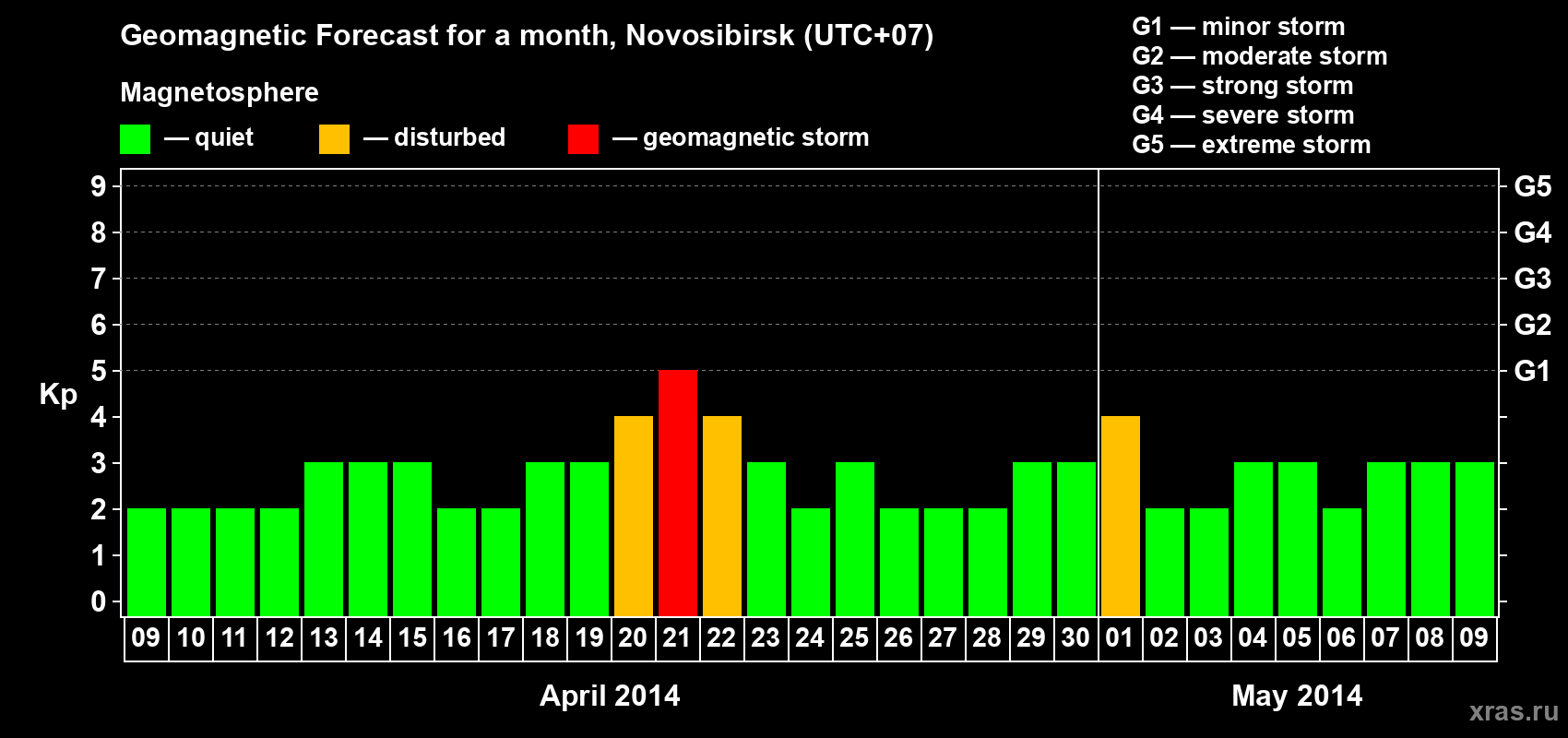 Geomagnetic storm forecast in Novosibirsk for Apr 09, 2014