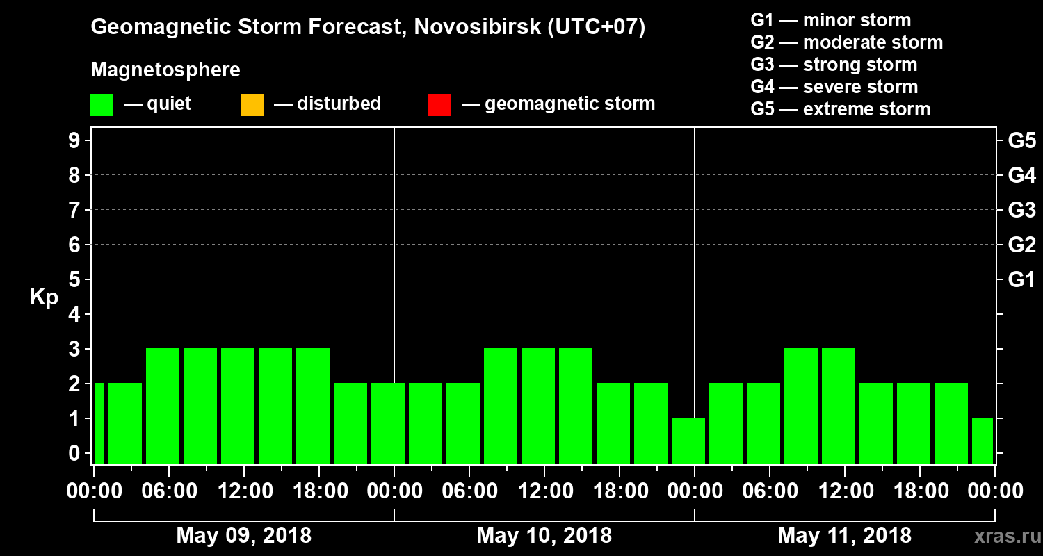 Geomagnetic activity forecast in Novosibirsk — May 09, 2018