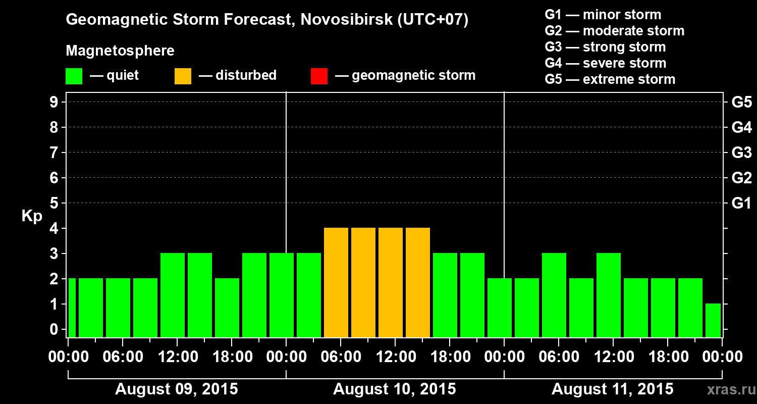 Geomagnetic storm forecast in Novosibirsk for Aug 09, 2015