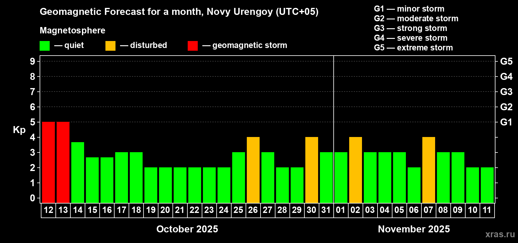 Geomagnetic storm forecast in Novy Urengoy for Oct 12, 2025