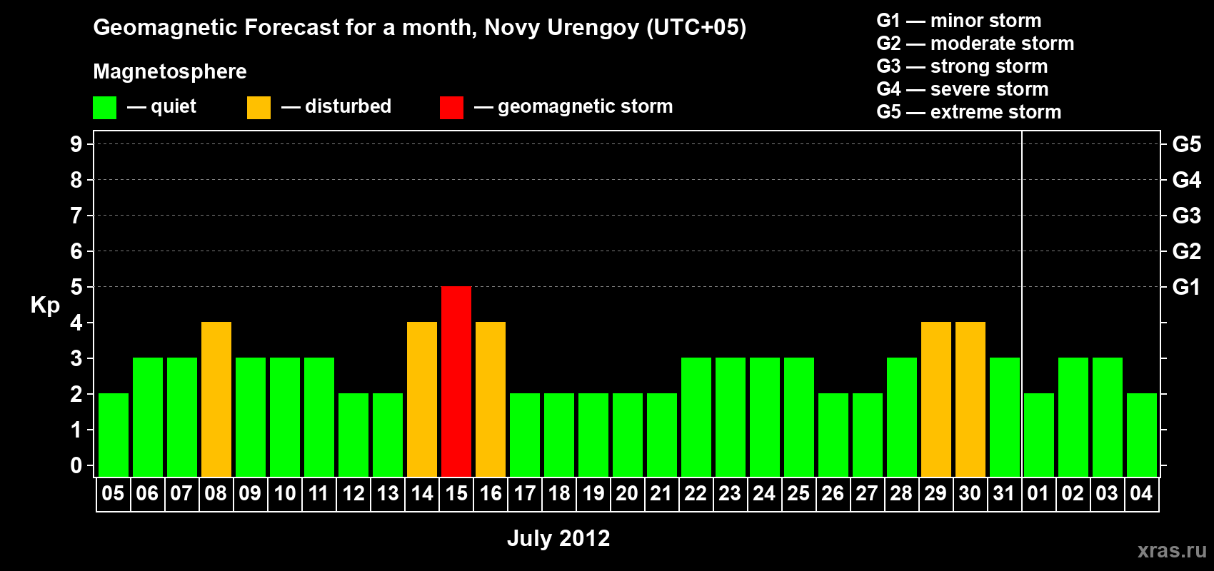 Geomagnetic storm forecast in Novy Urengoy for Jul 05, 2012