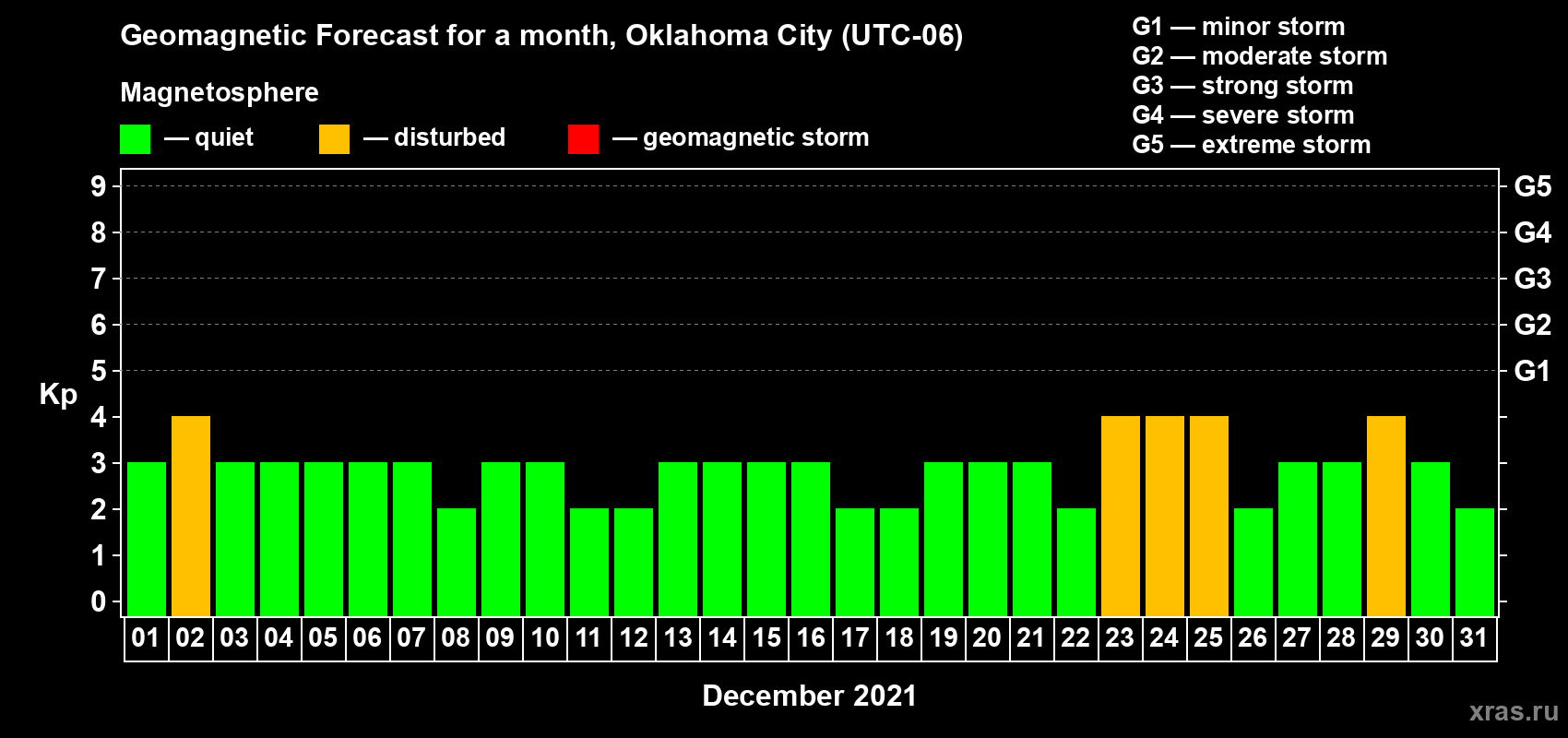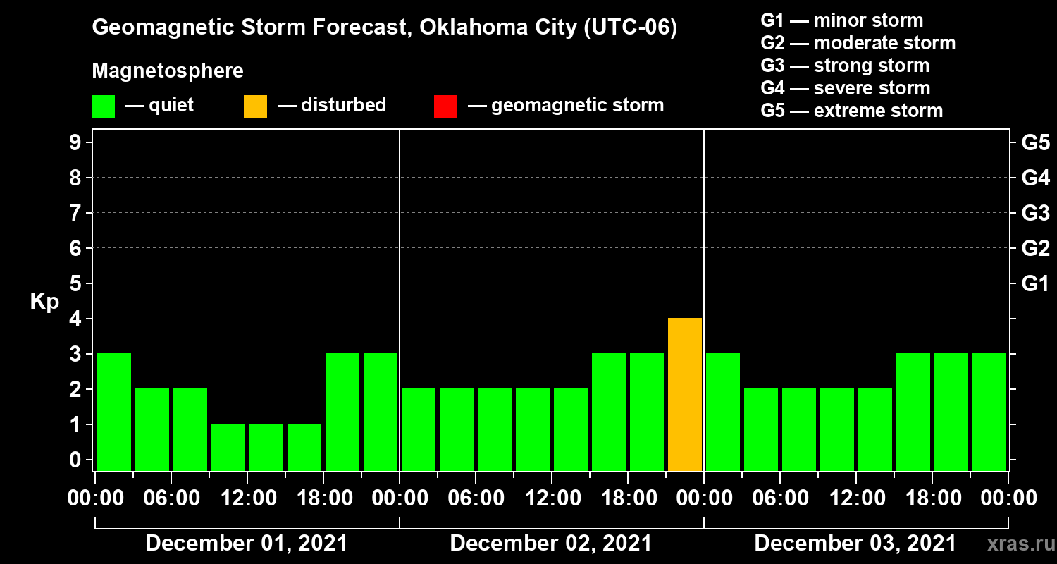 Geomagnetic storm forecast in Oklahoma City for Dec 01, 2021
