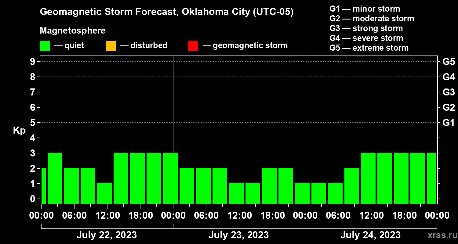 Geomagnetic storm forecast in Oklahoma City for Jul 22, 2023