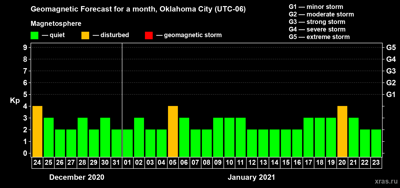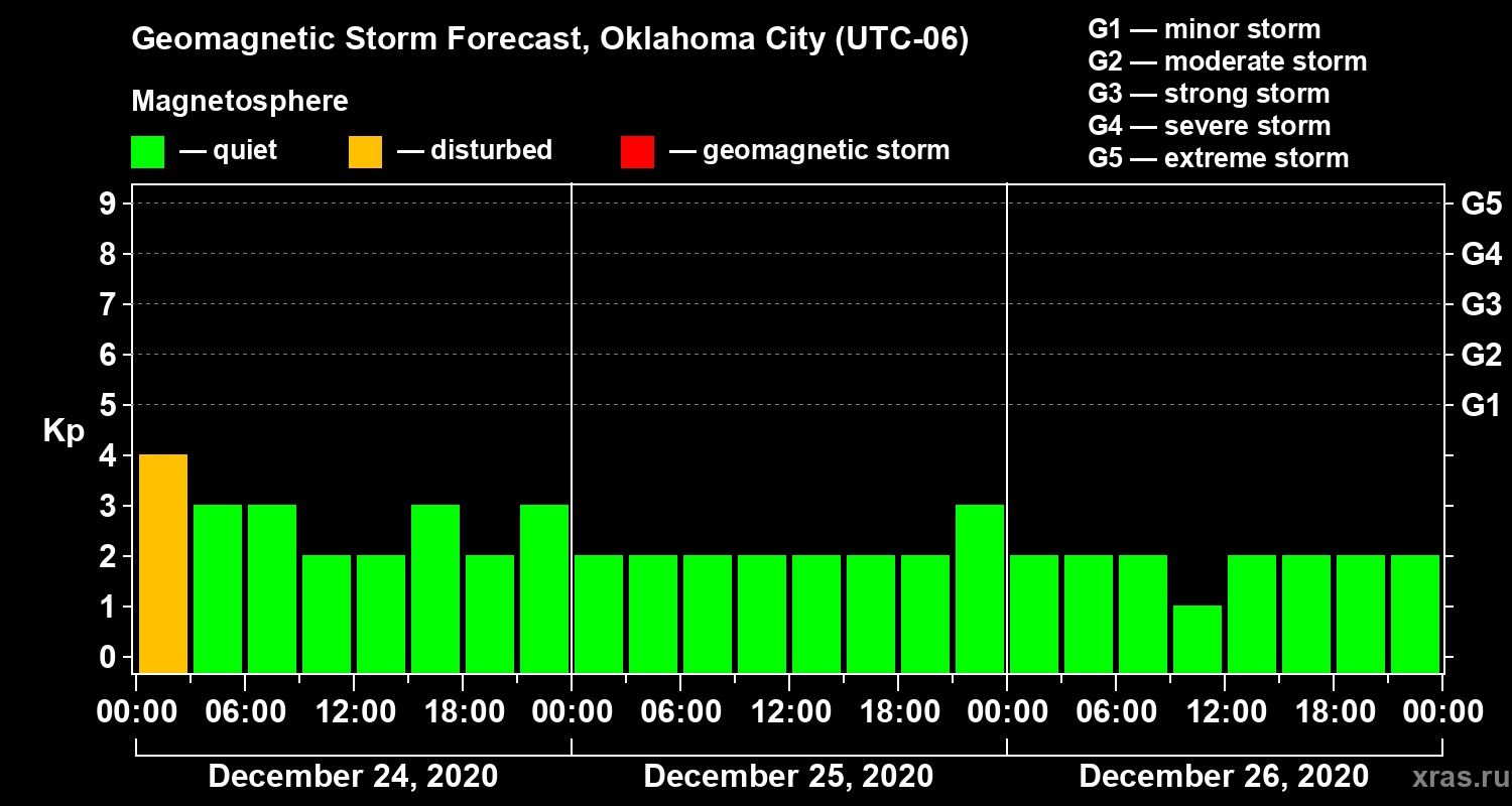 Geomagnetic storm forecast in Oklahoma City for Dec 24, 2020