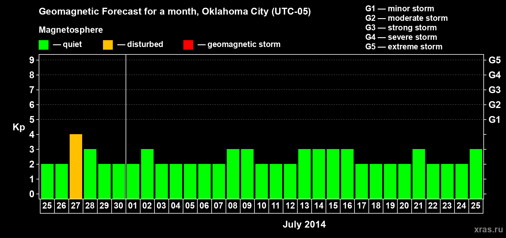 Geomagnetic storm forecast in Oklahoma City for Jun 25, 2014