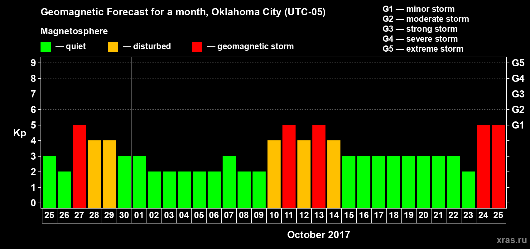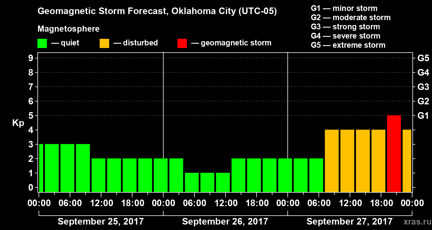 Geomagnetic storm forecast in Oklahoma City for Sep 25, 2017