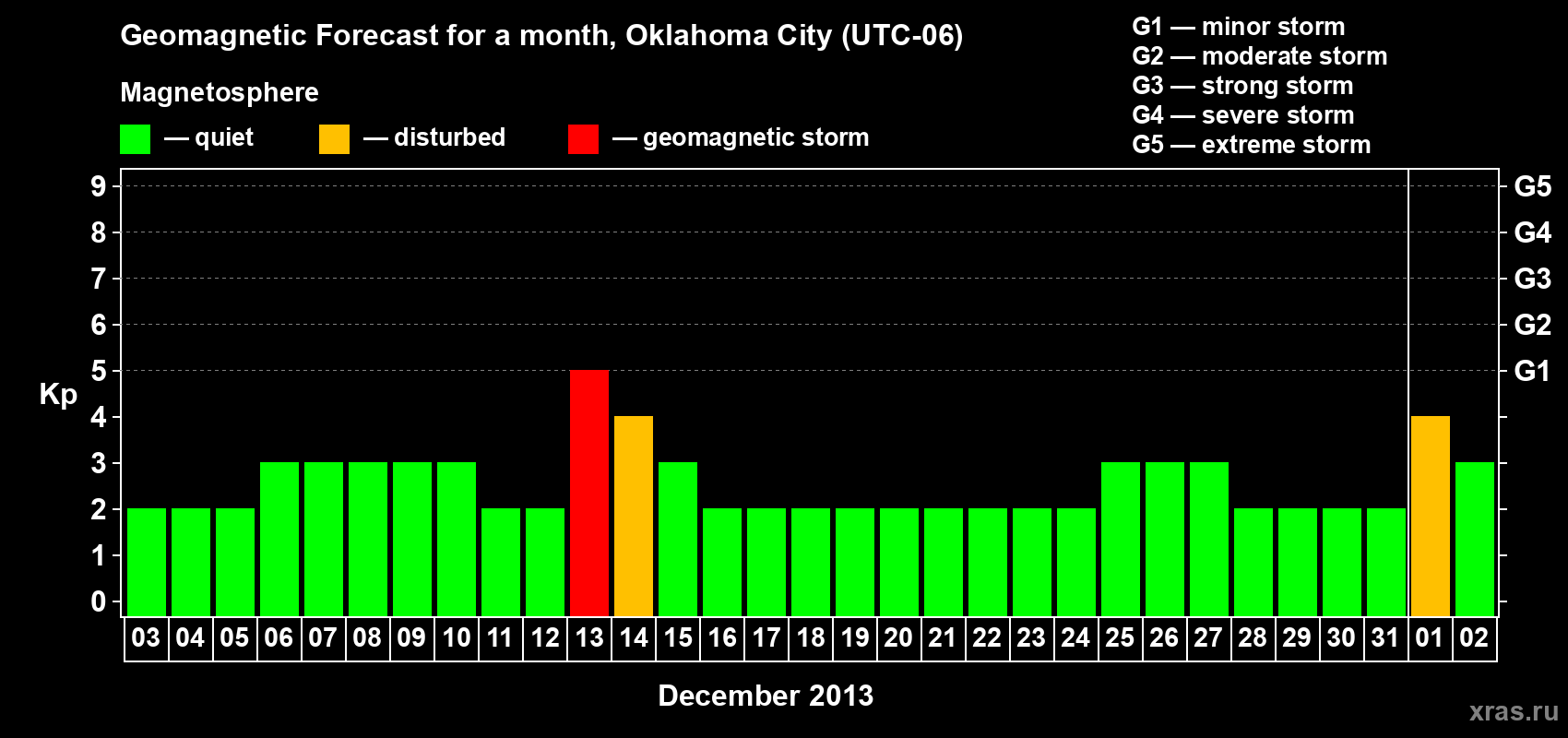Geomagnetic storm forecast in Oklahoma City for Dec 03, 2013