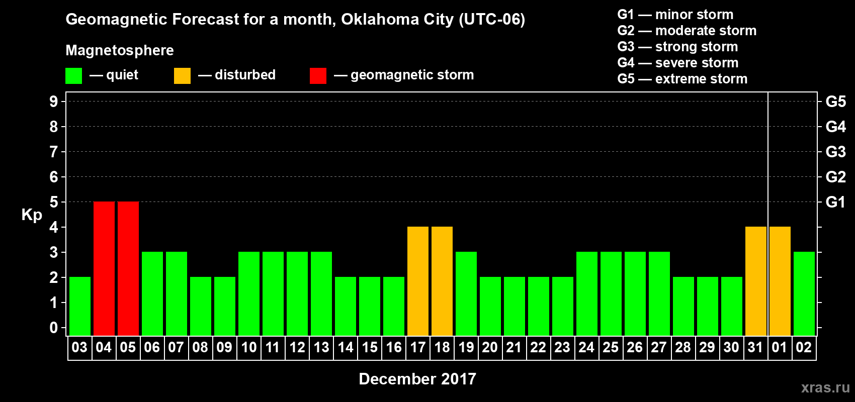 Geomagnetic storm forecast in Oklahoma City for Dec 03, 2017
