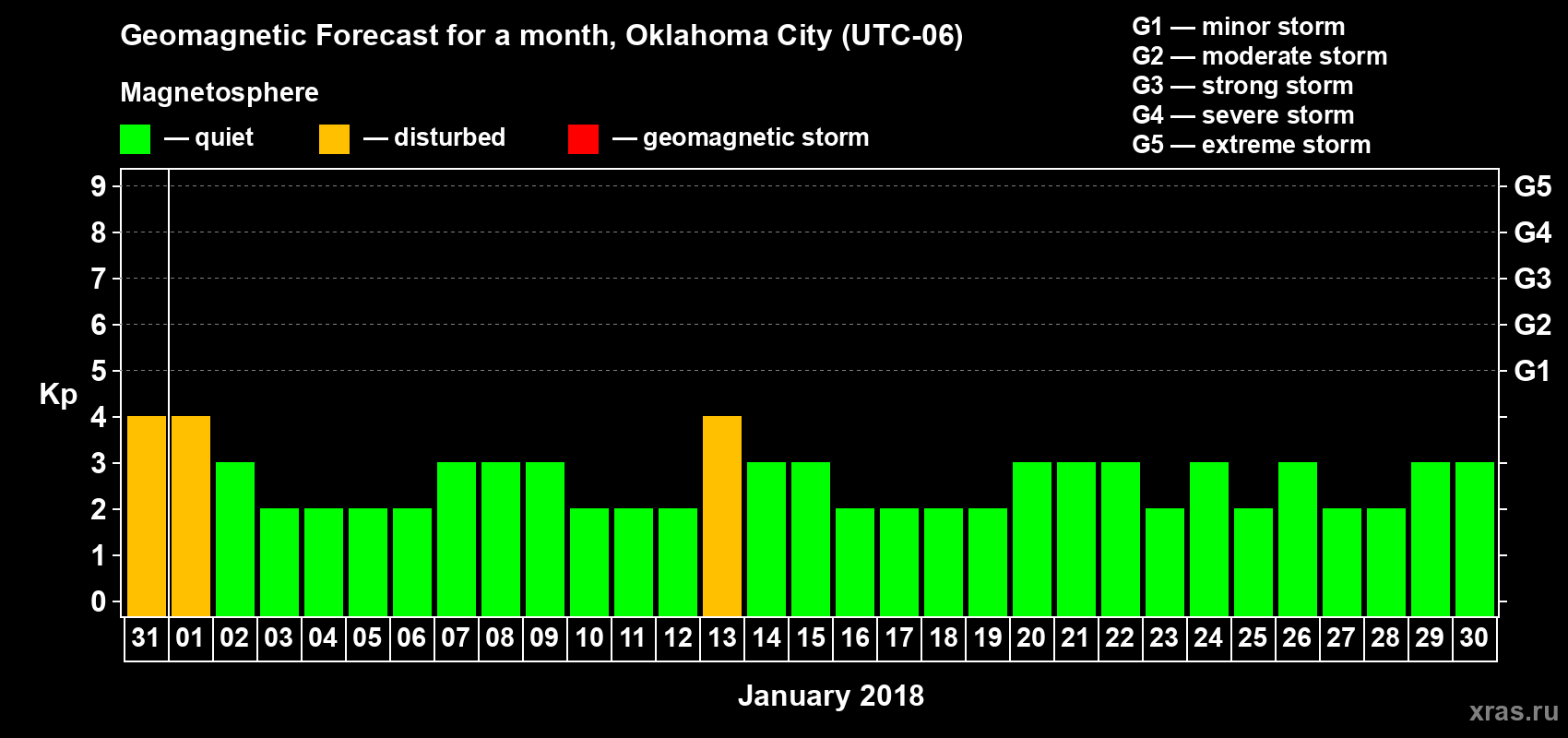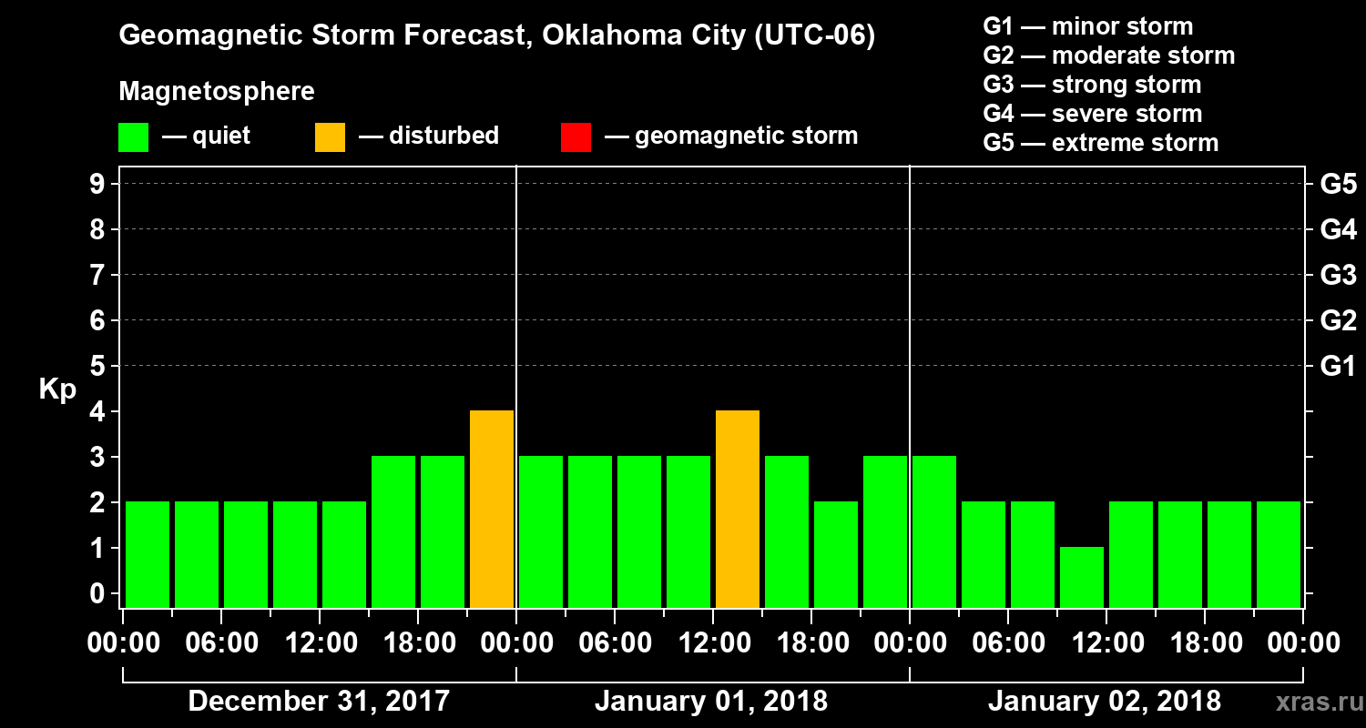 Geomagnetic storm forecast in Oklahoma City for Dec 31, 2017