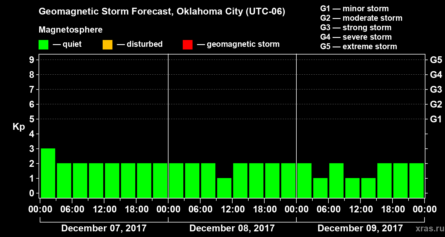 Geomagnetic storm forecast in Oklahoma City for Dec 07, 2017