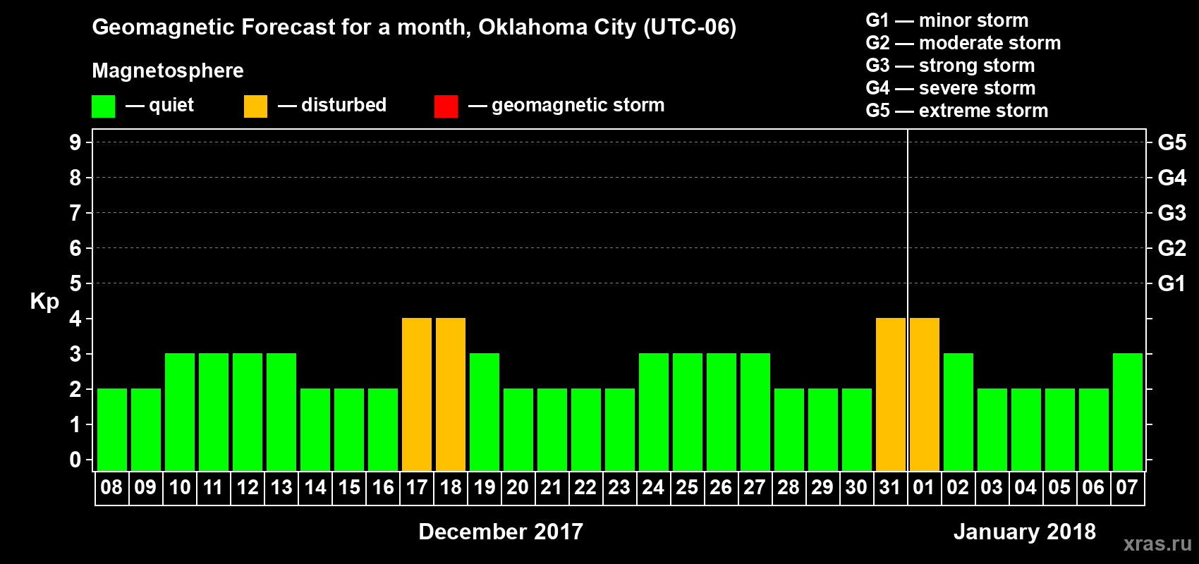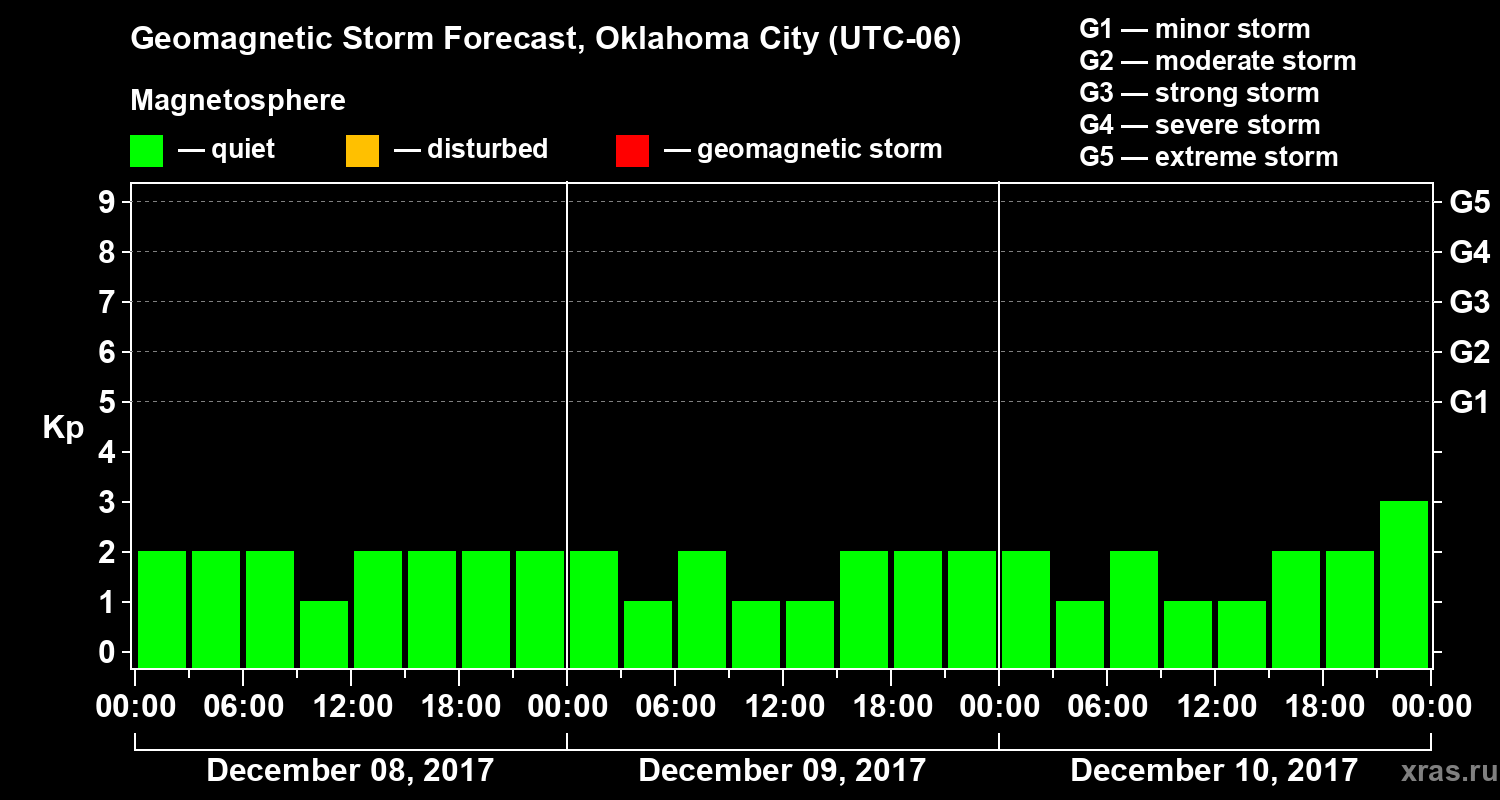 Geomagnetic storm forecast in Oklahoma City for Dec 08, 2017
