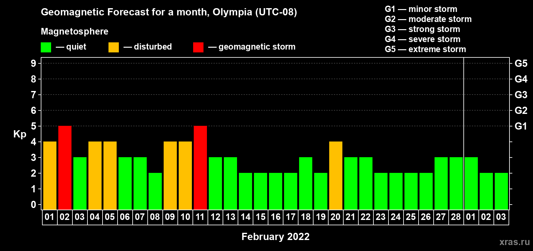 Geomagnetic storm forecast in Olympia for Feb 01, 2022