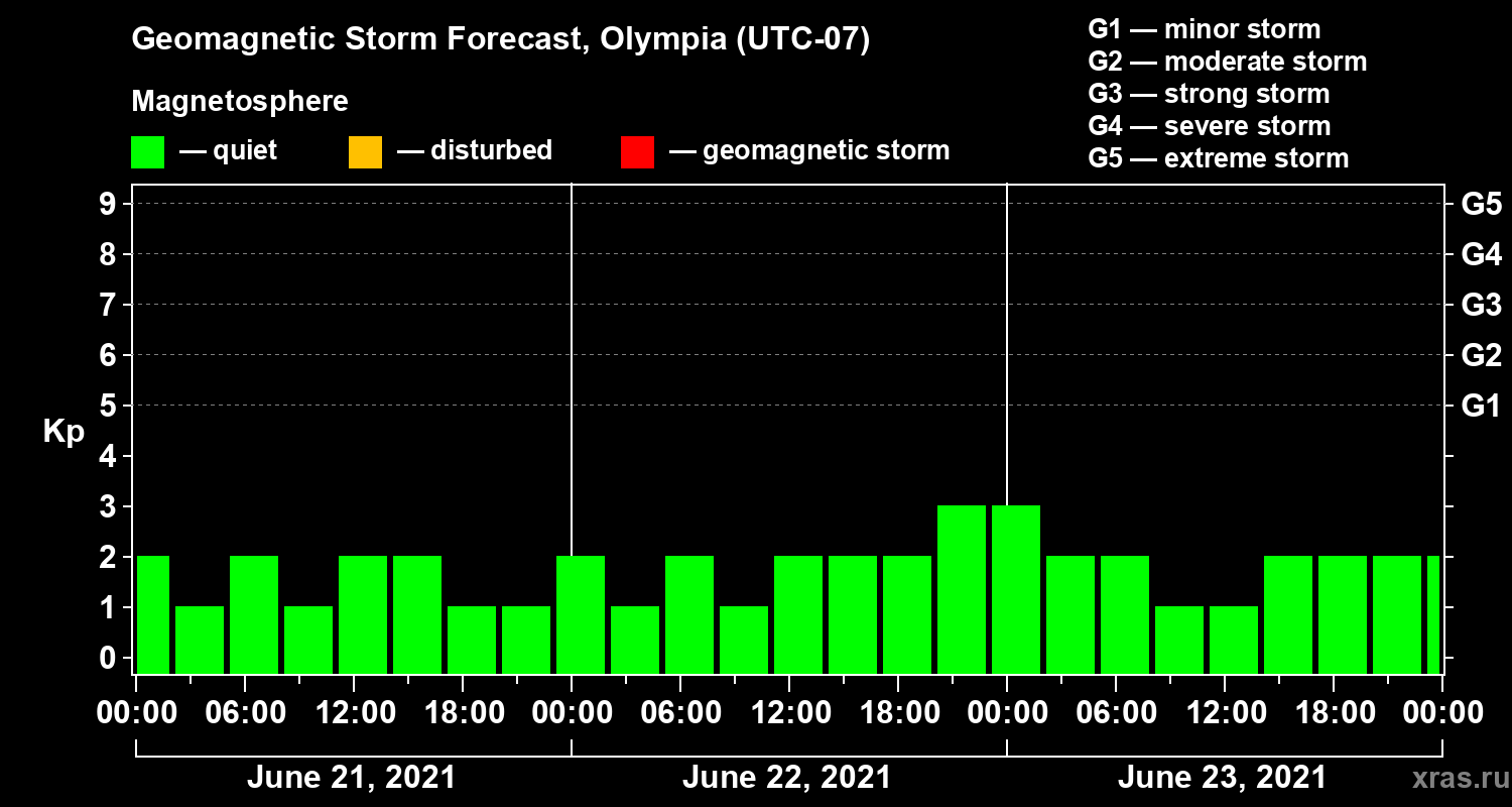Geomagnetic storm forecast in Olympia for Jun 21, 2021