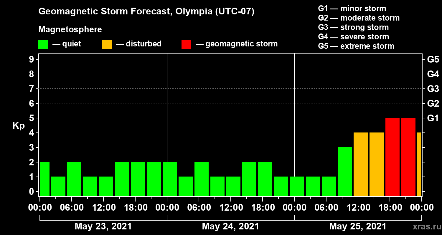 Geomagnetic storm forecast in Olympia for May 23, 2021
