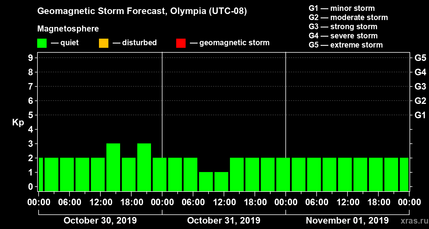 Geomagnetic activity forecast in Olympia — Oct 30, 2019