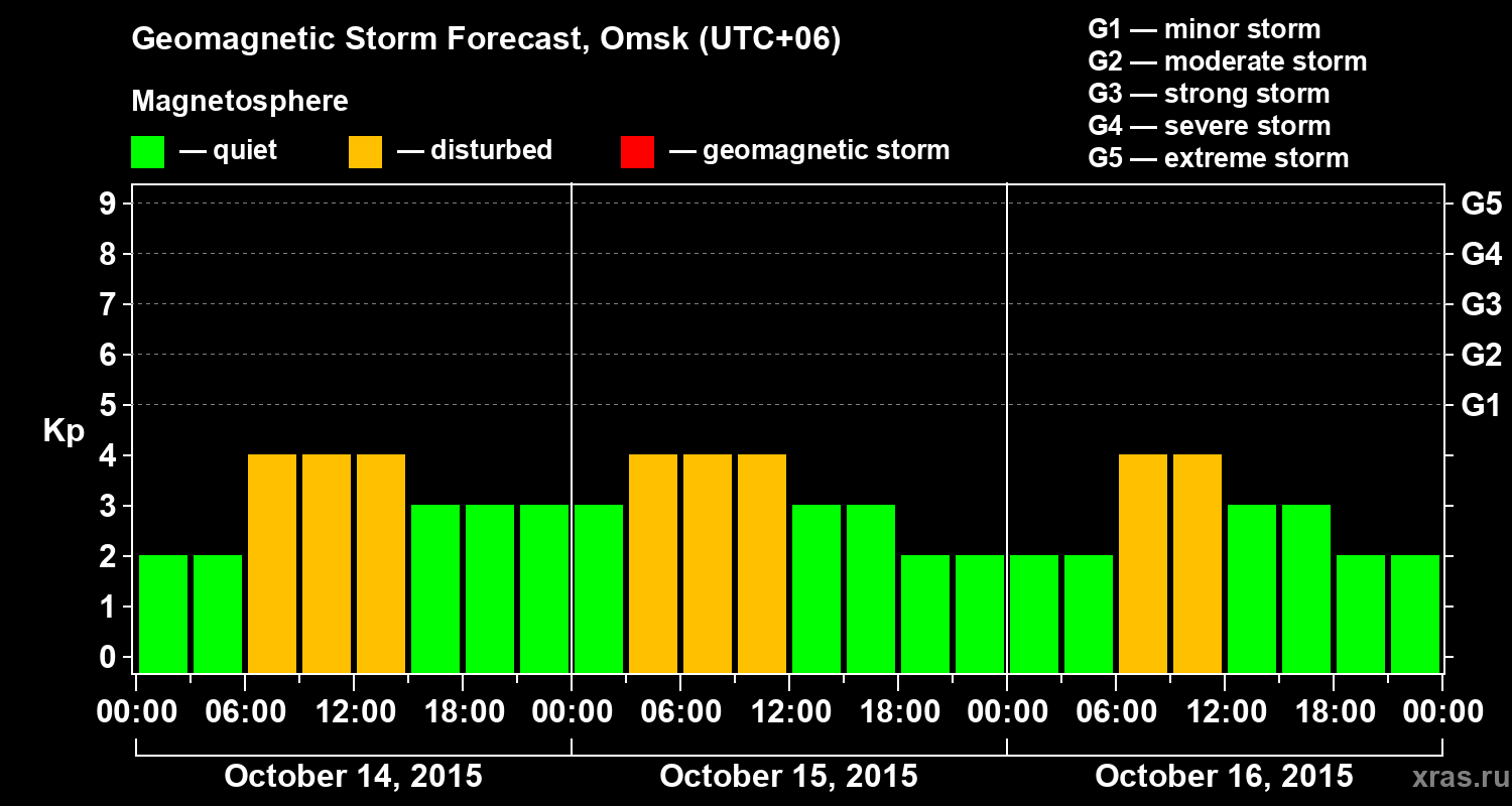Geomagnetic storm forecast in Omsk for Oct 14, 2015