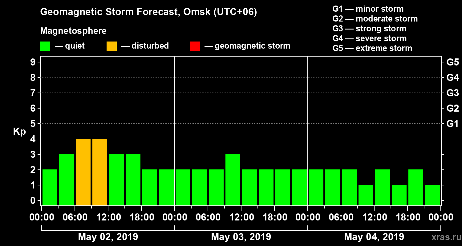 Geomagnetic activity forecast in Omsk — May 02, 2019