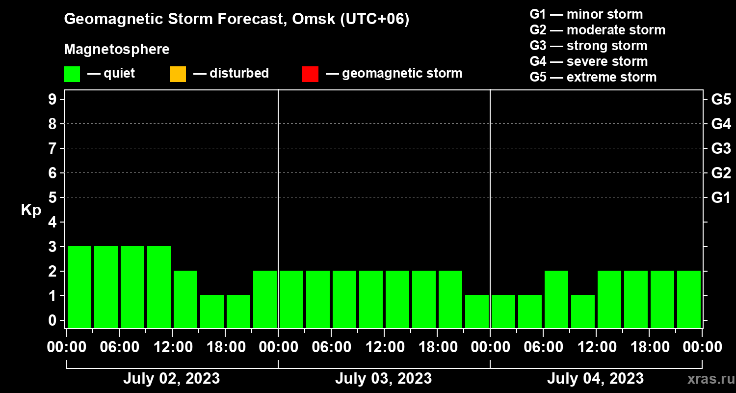 Geomagnetic storm forecast in Omsk for Jul 02, 2023