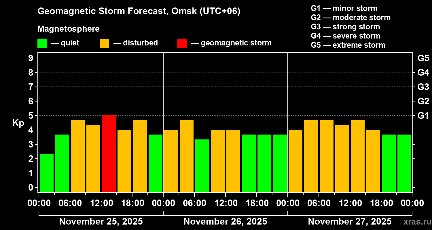 Geomagnetic storm forecast in Omsk for Nov 25, 2025