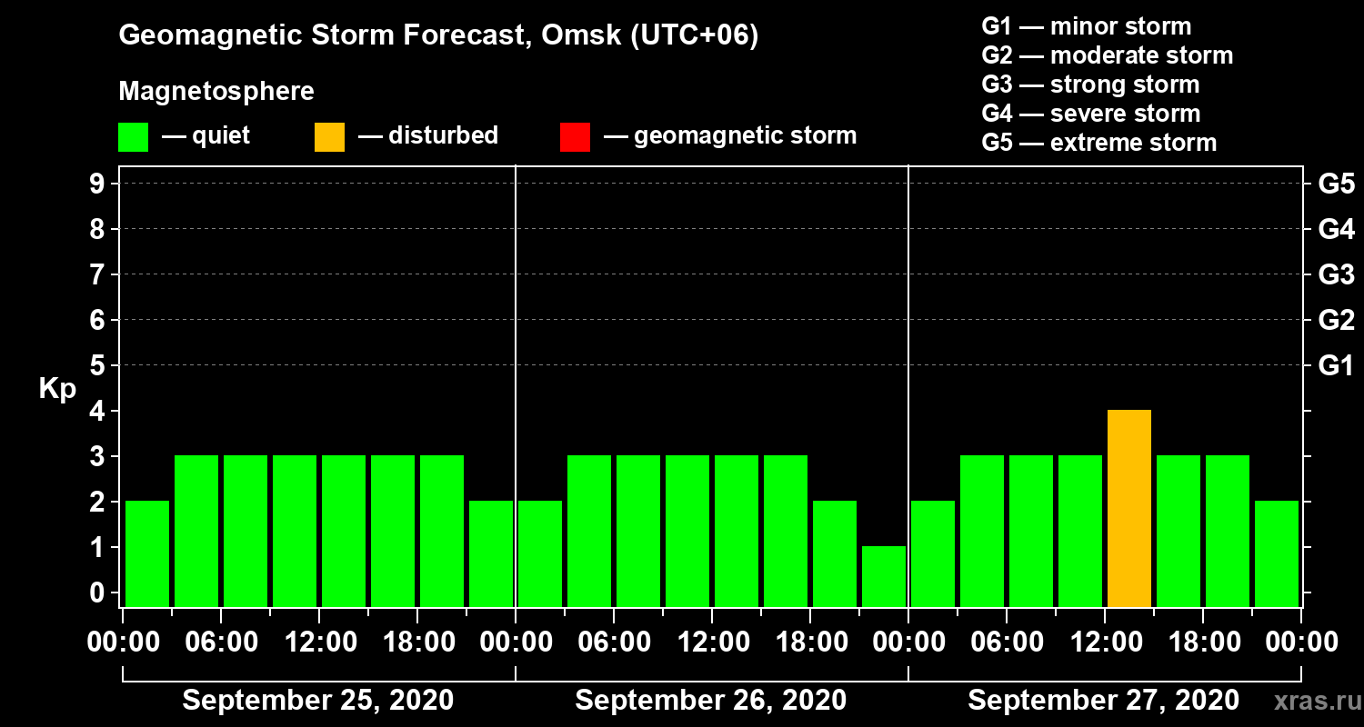 Geomagnetic storm forecast in Omsk for Sep 25, 2020