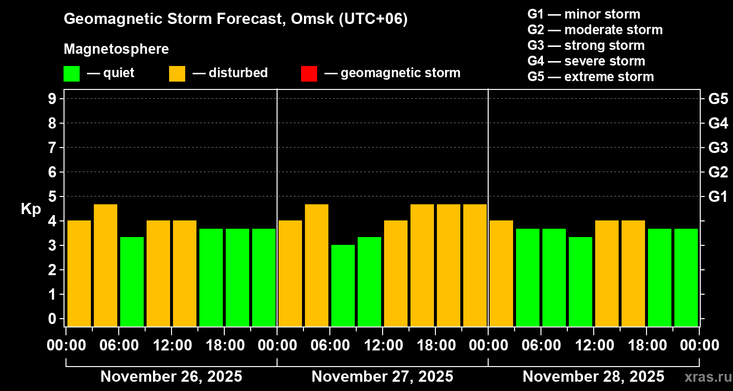 Geomagnetic storm forecast in Omsk for Nov 26, 2025
