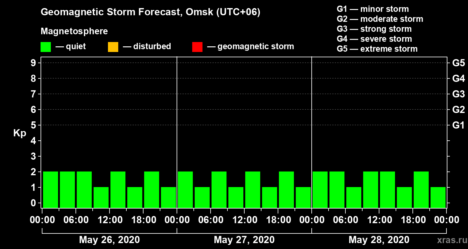 Geomagnetic activity forecast in Omsk — May 26, 2020